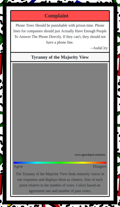 Phone Trees Should be punishable with prison time. Phone lines for companies should just Actually Have Enough People To Answer The Phone Directly. If they can't, they should not have a phone line.