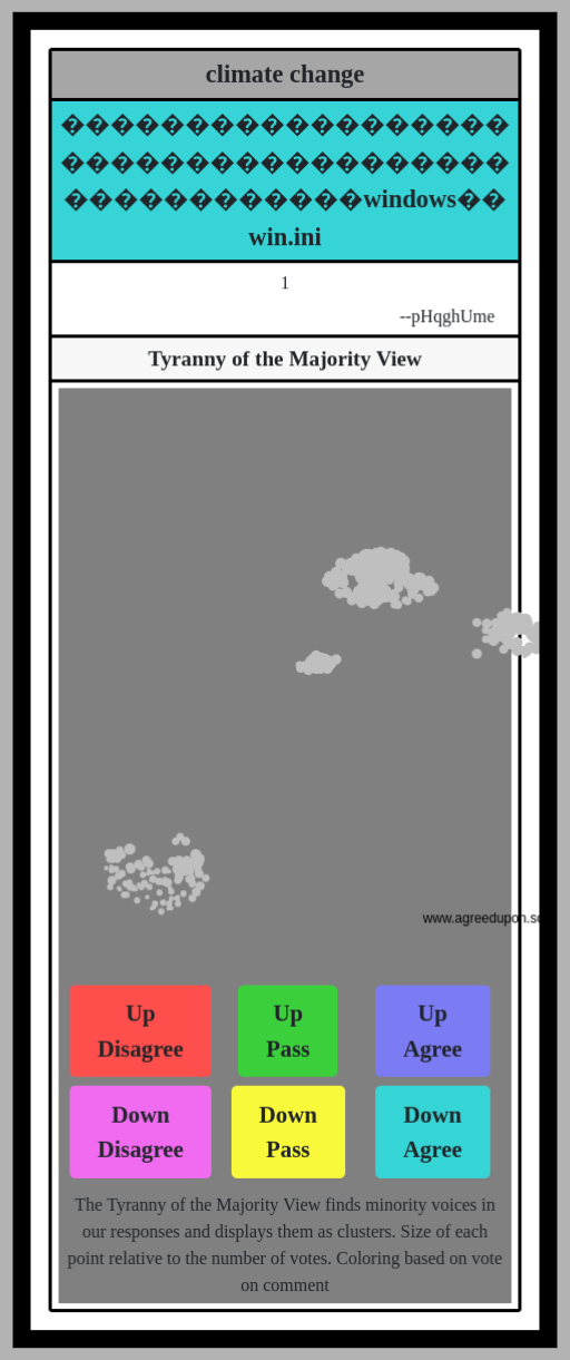 The Tyranny of the Majority View finds minority voices in our responses and displays them as clusters. Size of each point relative to the number of votes. Coloring based on vote on comment