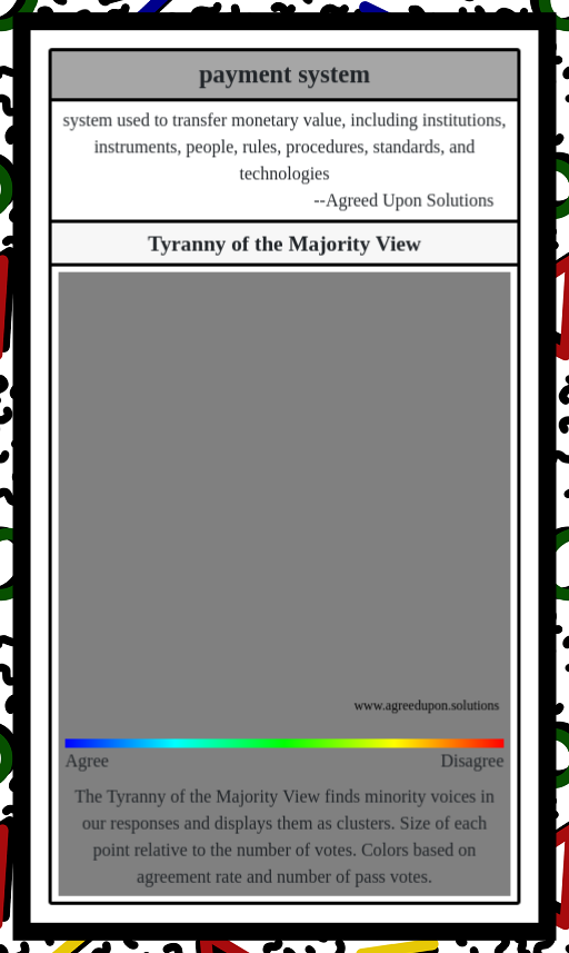The Tyranny of the Majority View finds minority voices in our responses and displays them as clusters. Size of each point relative to the number of votes. Colors based on agreement rate and number of pass votes.