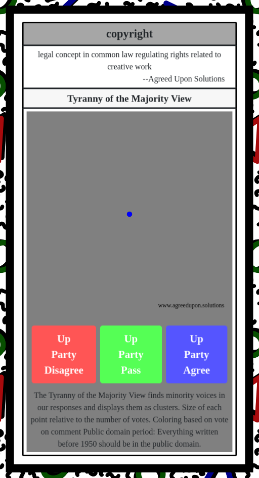 The Tyranny of the Majority View finds minority voices in our responses and displays them as clusters. Size of each point relative to the number of votes. Colors based on agreement rate and number of pass votes.