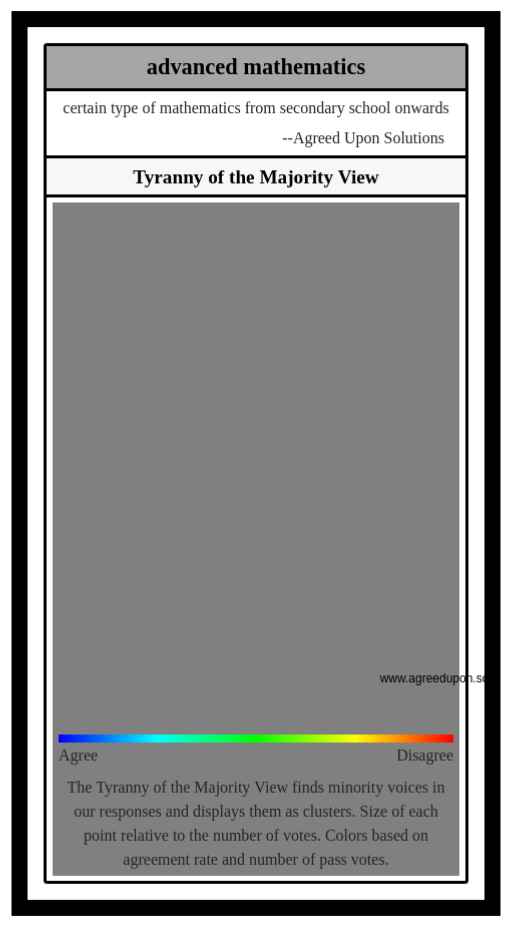 The Tyranny of the Majority View finds minority voices in our responses and displays them as clusters. Size of each point relative to the number of votes. Colors based on agreement rate and number of pass votes.