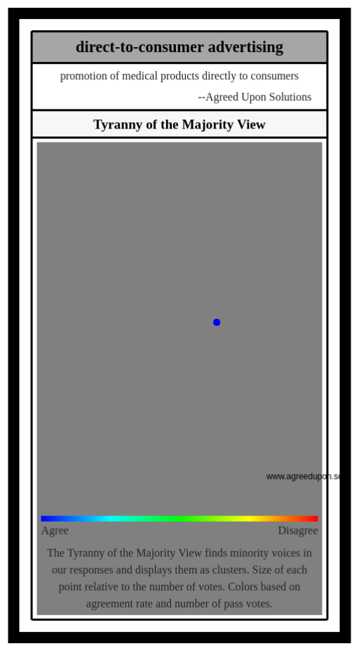 The Tyranny of the Majority View finds minority voices in our responses and displays them as clusters. Size of each point relative to the number of votes. Colors based on agreement rate and number of pass votes.